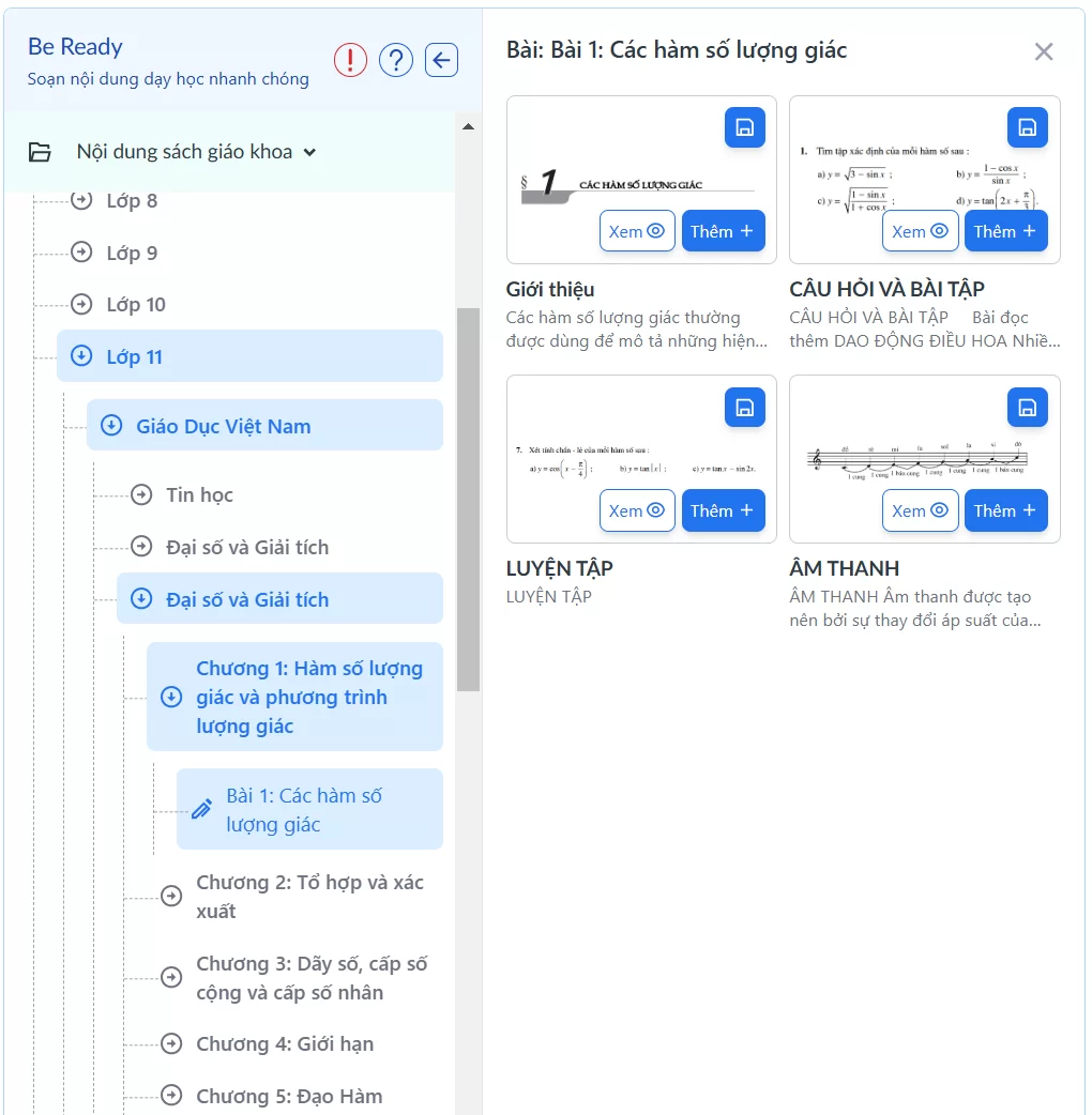 Bước 2: Chọn Nội dung sách giáo khoa