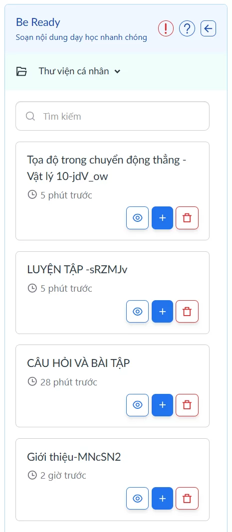 Hệ thống sẽ hiển thị các bài học đã lưu trong thư viện cá nhân.