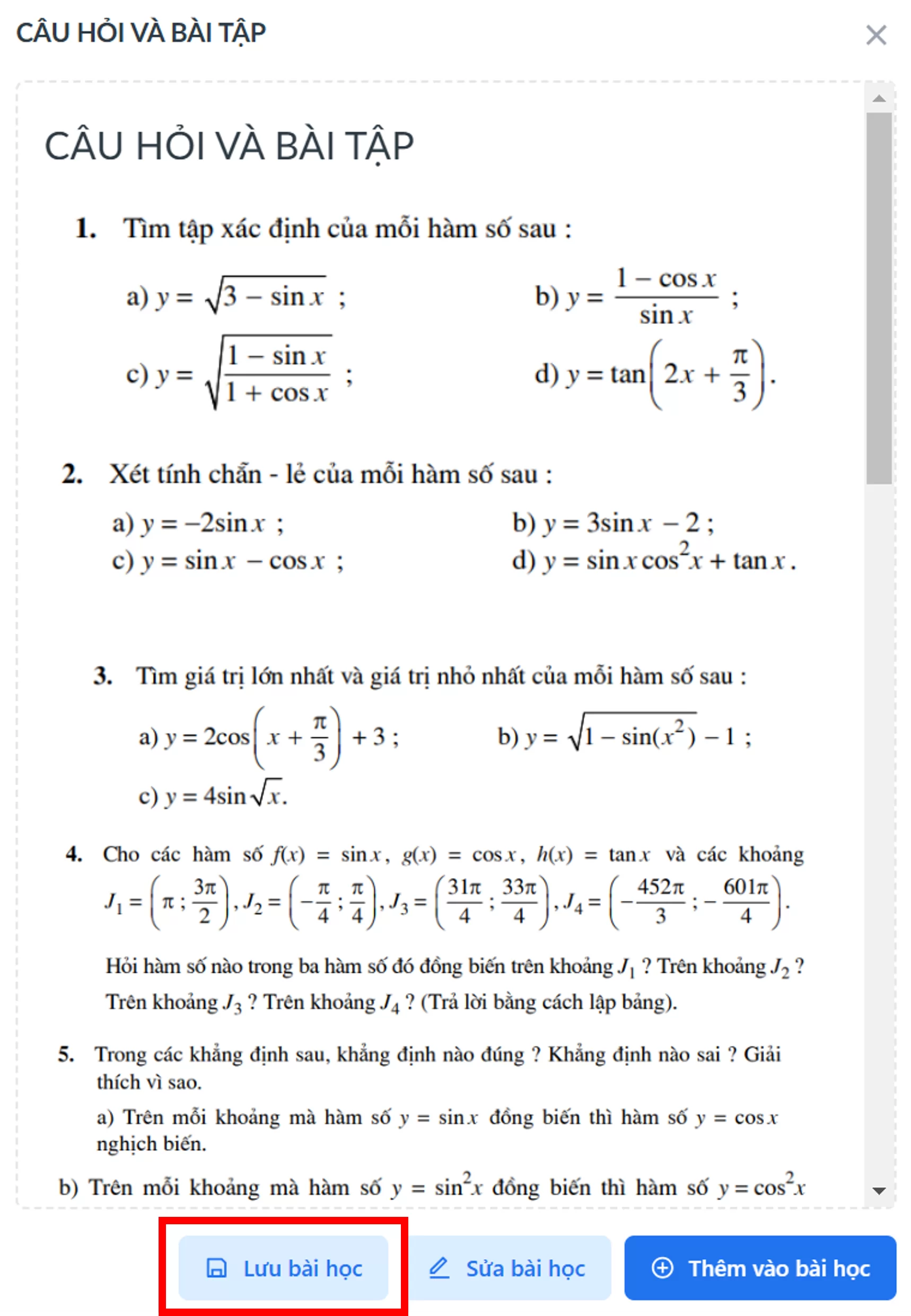 Bước 6: Nhấn Lưu bài học để lưu vào thư viện cá nhân.