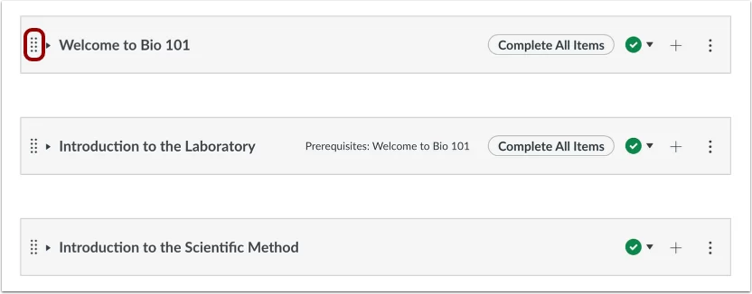 Bạn cũng có thể sắp xếp lại một mục mô-đun bằng cách di chuột qua nút kéo bên cạnh tên mục đó và kéo mục đó đến vị trí mong muốn
