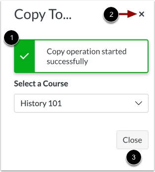 Lưu ý: Menu thả xuống Chọn khóa học chỉ hiển thị các khóa học mà bạn đang đăng ký hoặc sẽ đăng ký. Không thể sao chép các mô-đun vào khóa học đã kết thúc.