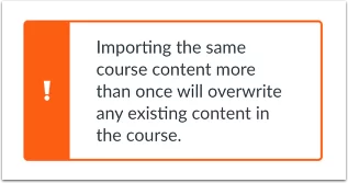 Khi sao chép nội dung, một thông báo sẽ hiển thị giải thích rằng việc nhập cùng một nội dung khóa học nhiều lần sẽ ghi đè lên mọi nội dung hiện có trong khóa học.
